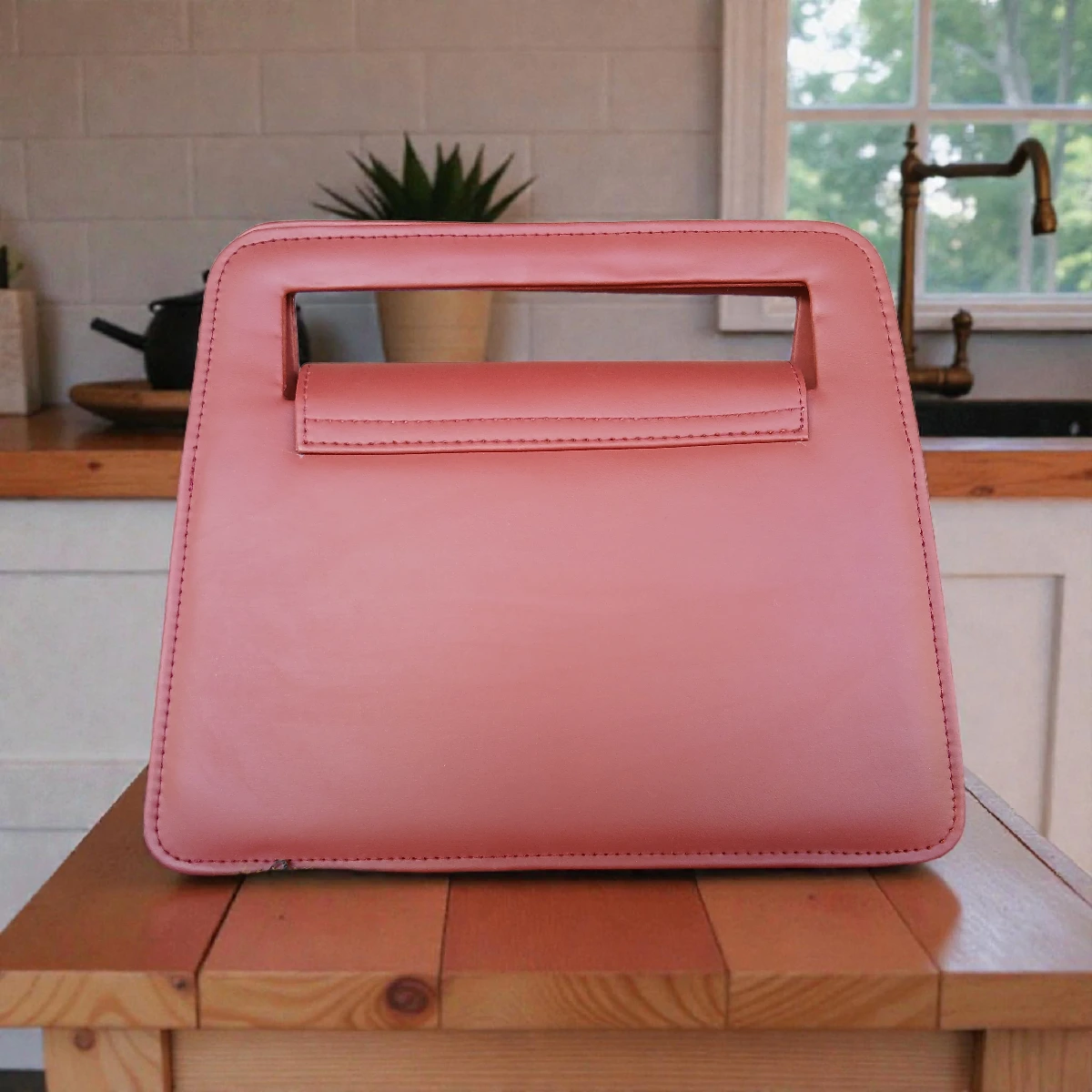 Minimal Contrast Strap Tote Handbag – Blush Pink