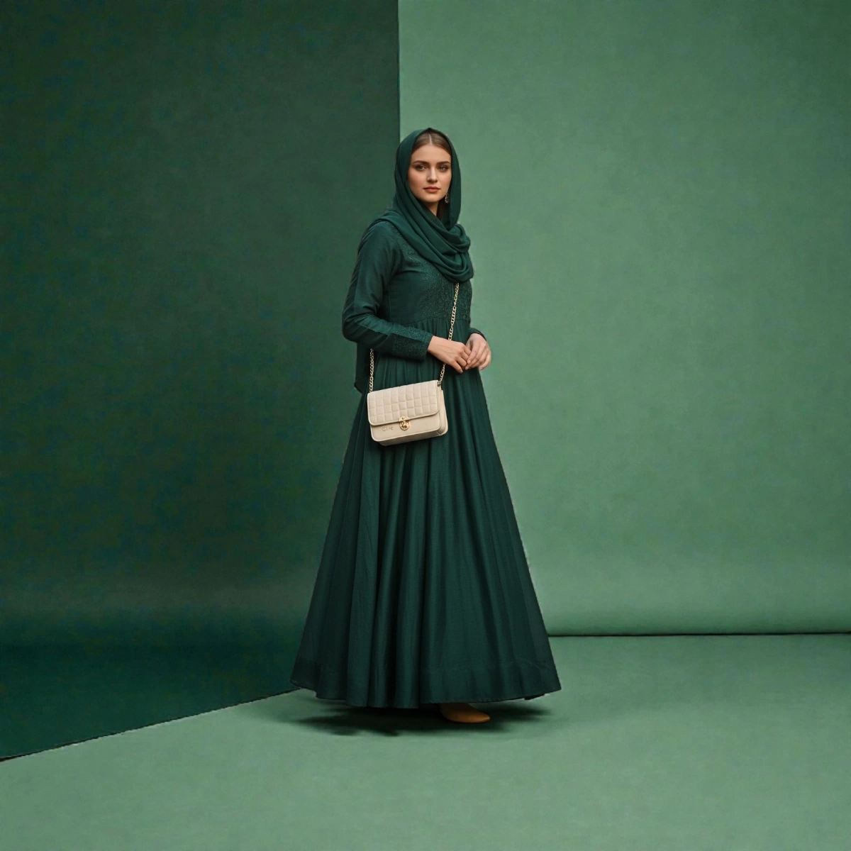 Printed Portrait Mini Structured Top Handle Crossbody – Emerald Green