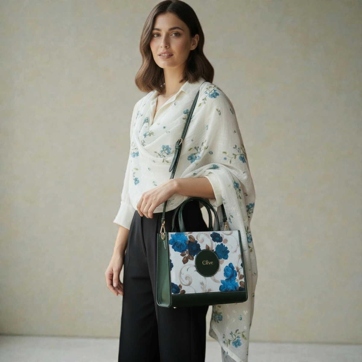 It features a printed front with leather-finish edges, making it suitable for daily use, outings, and casual wear.