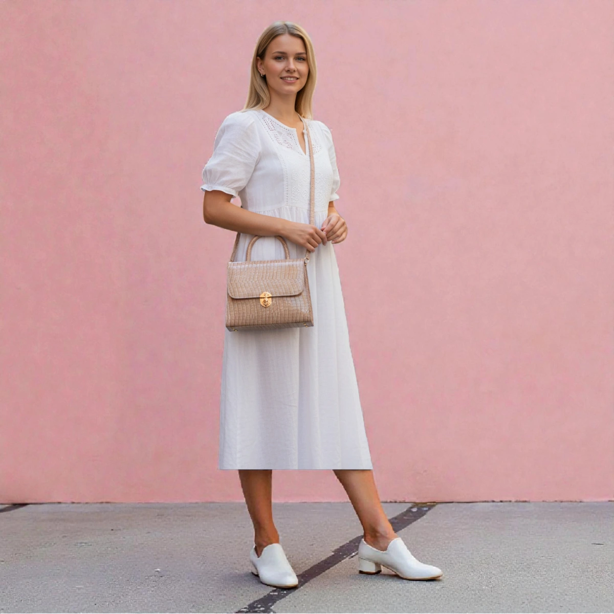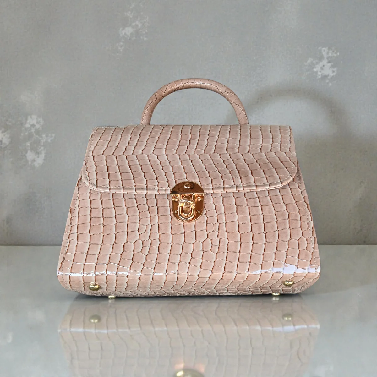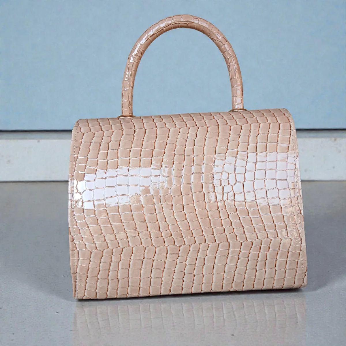 Be the first to review “Glossy Croc Top Handle Bag – Beige”