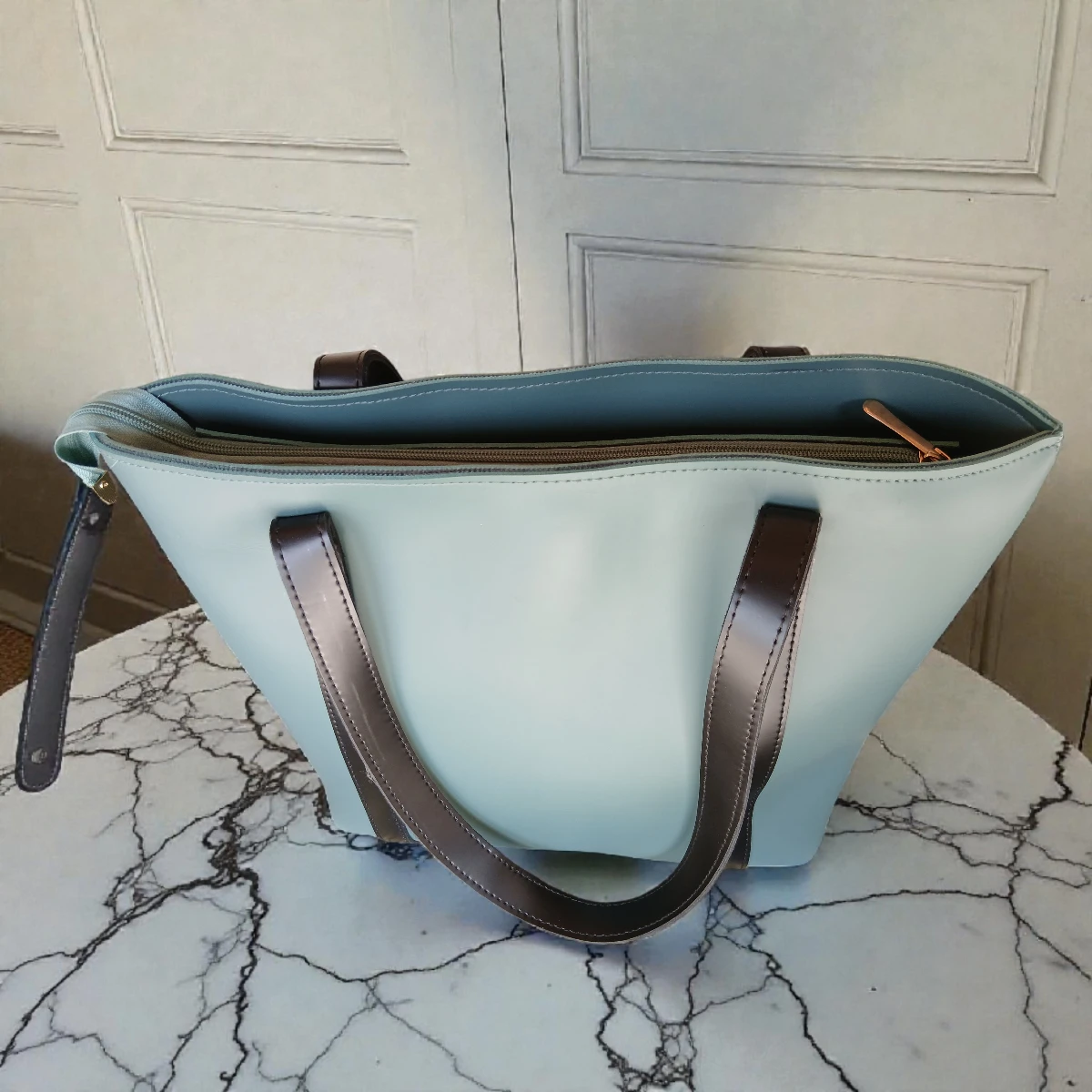 Minimal Contrast Strap Tote Handbag – Dusty Blue