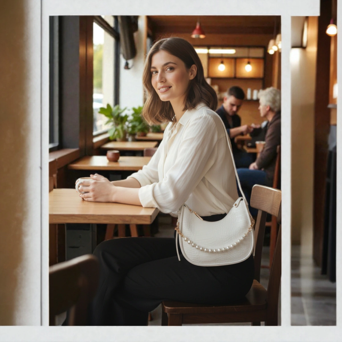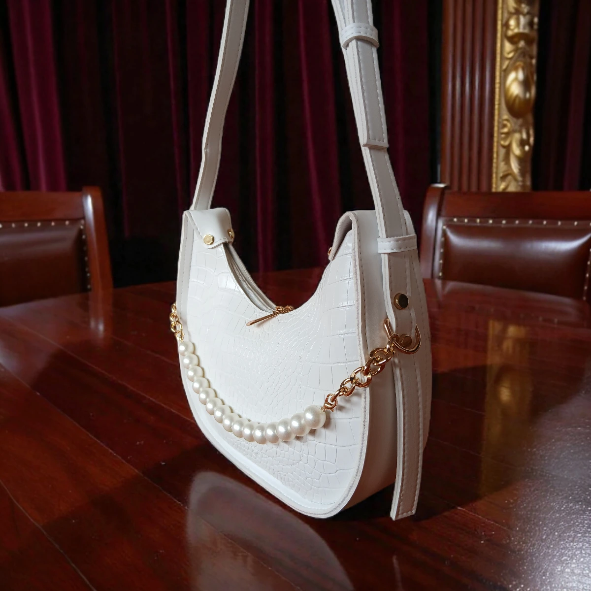 Be the first to review “Textured Pearl Detail Crossbody Bag – White” Cancel reply